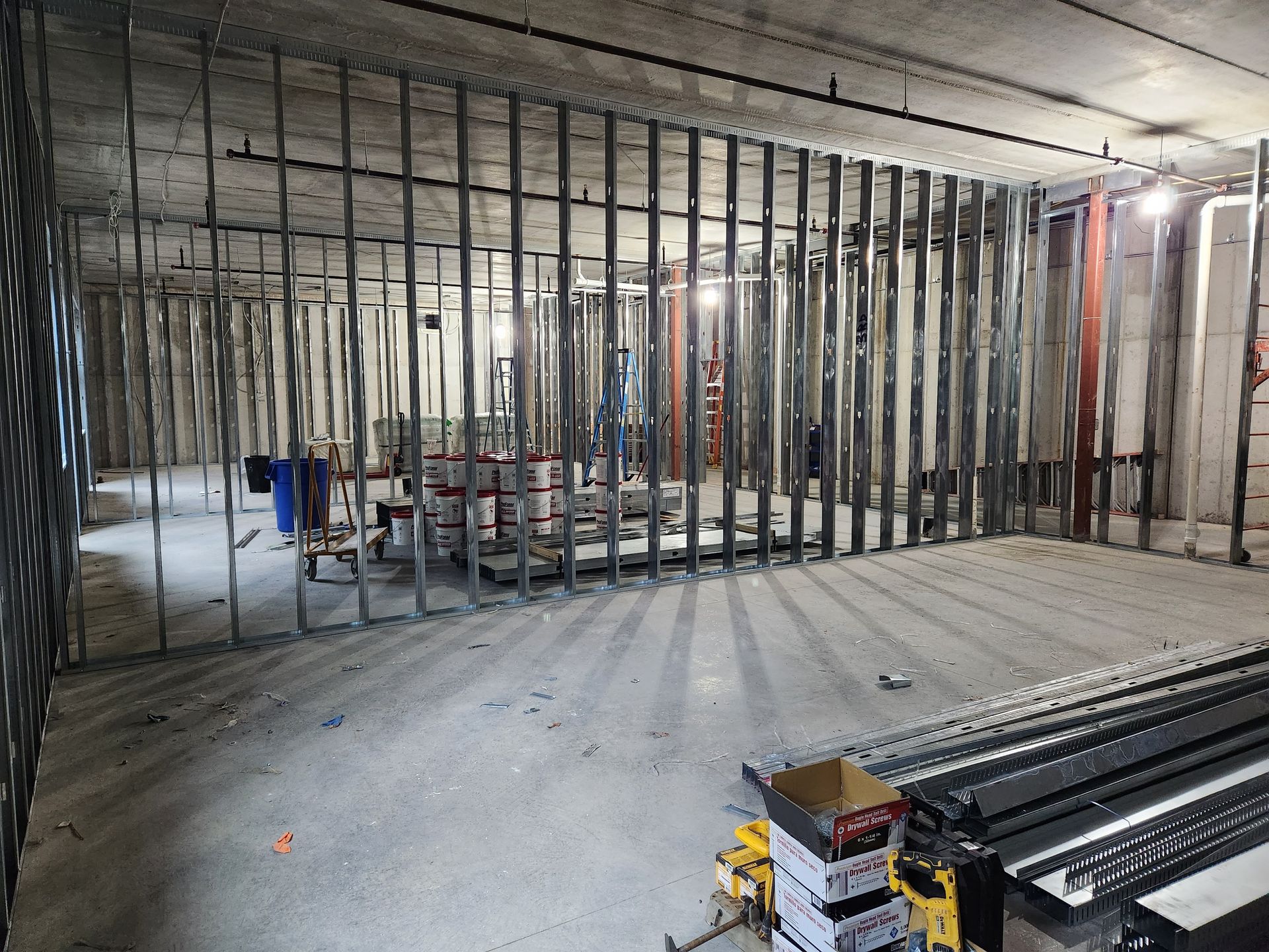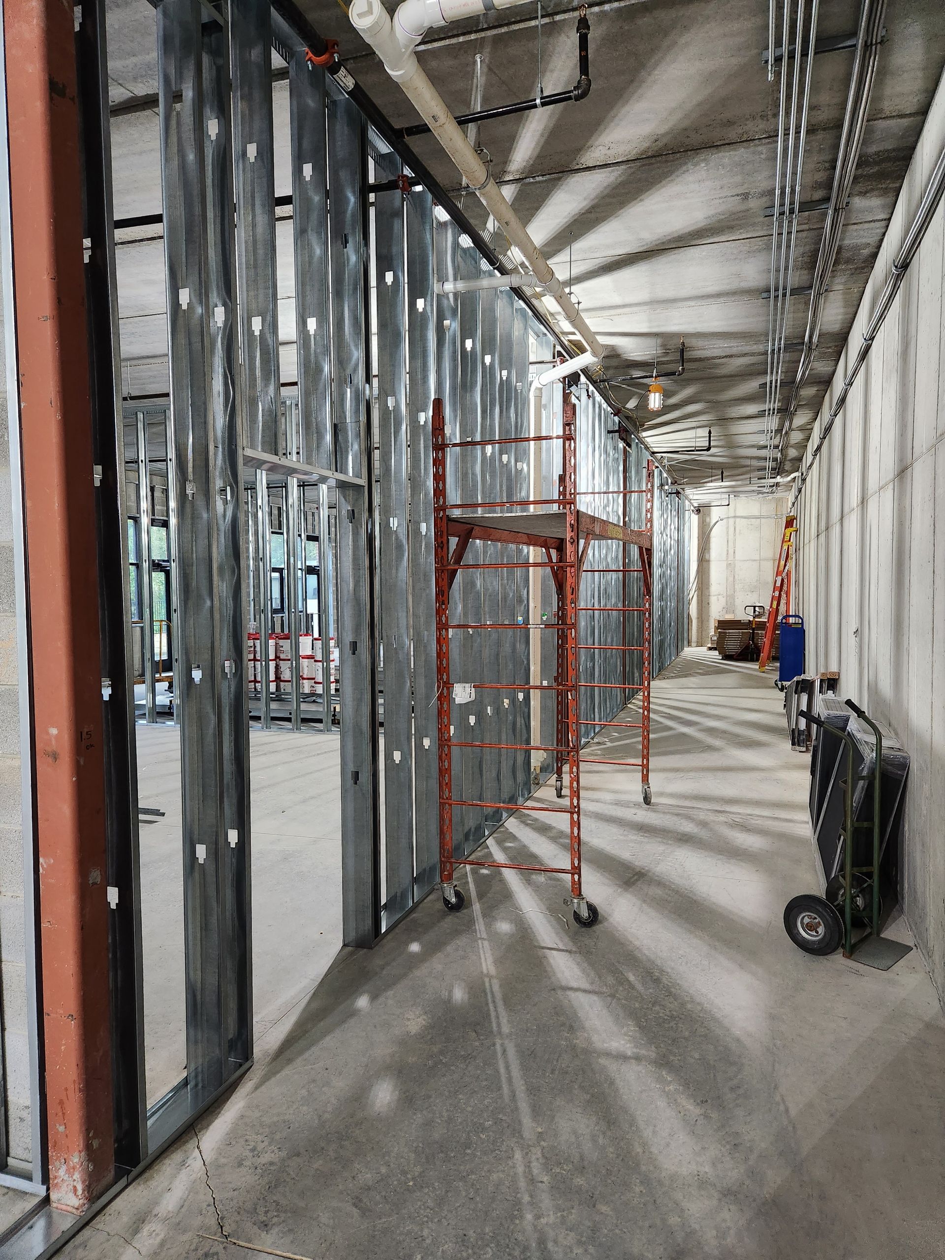 This week in the Honor Hall lower level, contractors will be working on completing the framing of the walls and installing the remaining electrical ceiling “rough-in" — the electrical wiring between the main panel and the walls.