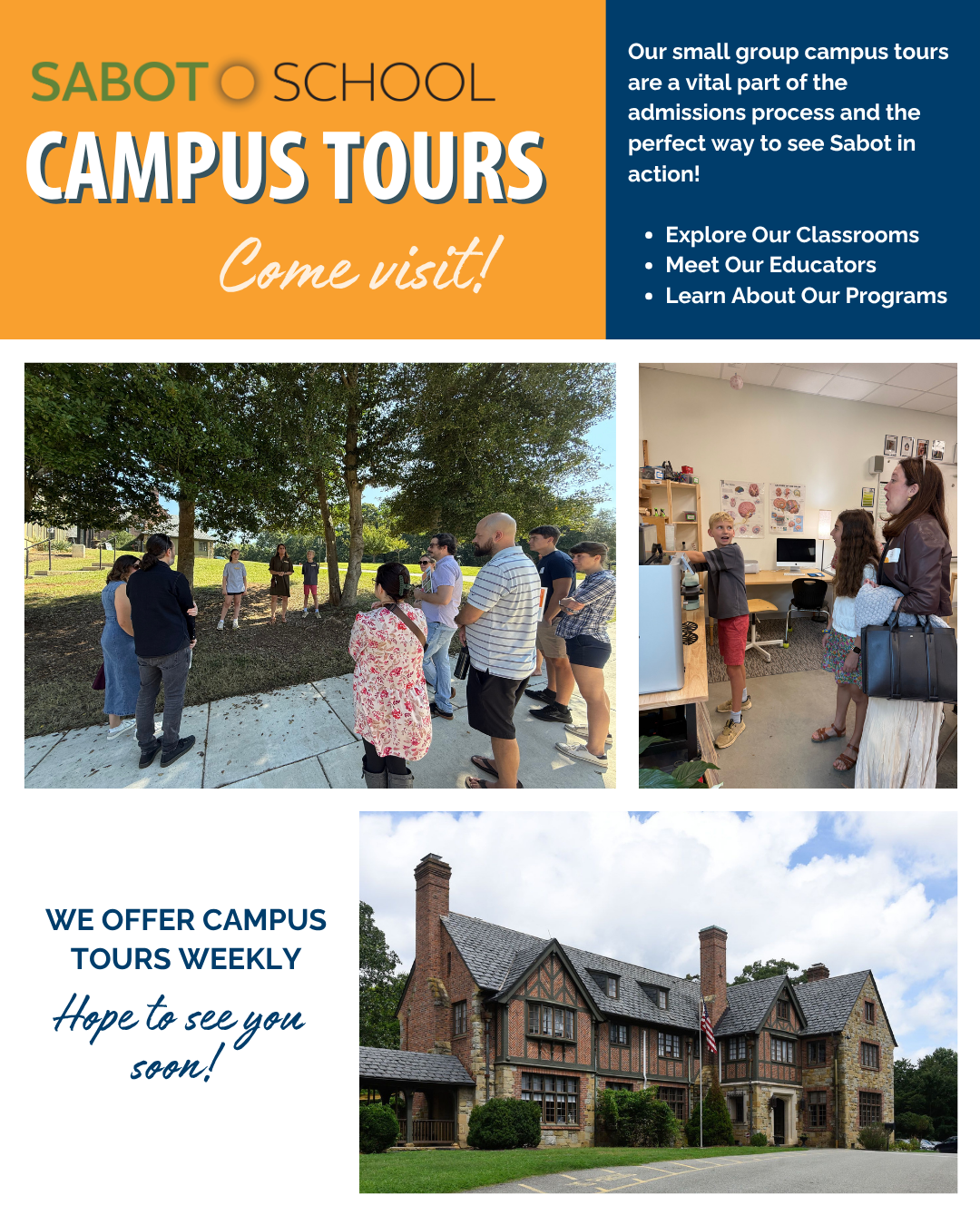 There’s so much about Sabot that can only be felt in person–the beauty of the grounds, the energy of the classrooms, the sense of community. Each family’s journey begins with a small-group tour, designed to give you time to ask questions and see learning in action. We look forward to welcoming you soon.