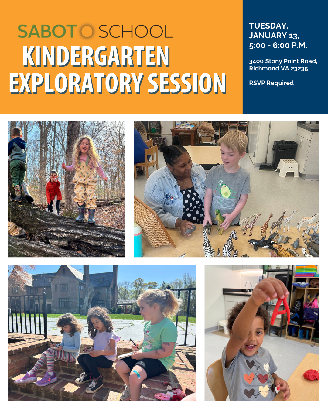 Please join us for an hour of exploration into Sabot’s Kindergarten program with our Director of Kindergarten - Grade 4, our Director of Auxiliary Programs, and our Kindergarten teachers.